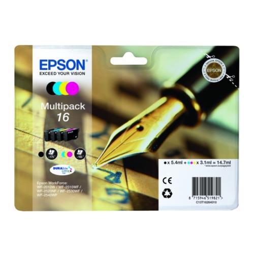 Epson bläckpatron multipack (C13T16264012 / 16) inkluderar svarta, cyan, magenta och gula patroner designade för överlägsen prestanda. Varje patron är konstruerad för högkvalitativa, livfulla utskrifter och skarp text, vilket uppfyller kraven för professionella utskriftsmiljöer. Lita på Epsons engagemang för pålitlighet och konsistens, vilket säkerställer att ditt företag förblir produktivt.